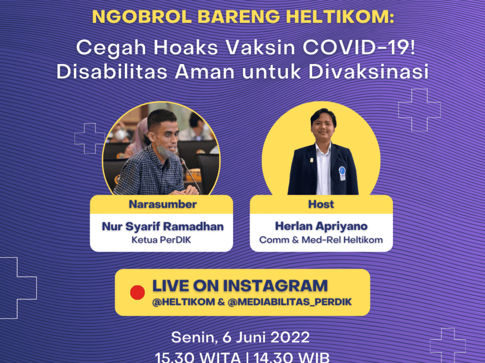 Agustus 10, 2022Published by umnadmin on Agustus 10, 2022Categories Berita GeneralNgobrol Bareng HELTIKOM: Bentuk Dukungan untuk Pemerintah dengan Edukasi Hoaks Vaksin COVID-19Tangerang, 06/06/2022 – HELTIKOM merupakan program yang berdiri atas kolaborasi dari Program Kemitraan Indonesia Australia […]